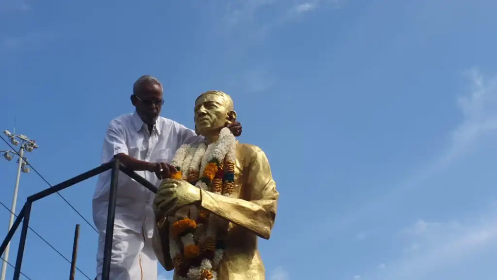 முதலில் சதுக்கத்தில் உள்ள அவருடைய திருவுருவ சிலைக்கு மலர் மாலை அணிவிக்கப்பட்டதுடன்,  அவரின் சமாதியிலும் மலர் தூவி அஞ்சலி செலுத்தப்பட்டது.