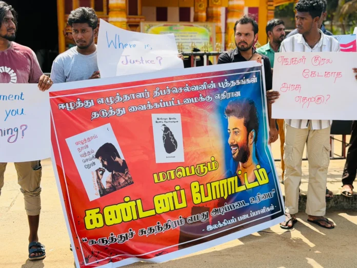 தமிழ் எழுத்தாளர்களின் நூல்கள் தடை: கிளிநொச்சியில் கவனயீர்ப்பு போராட்டம்